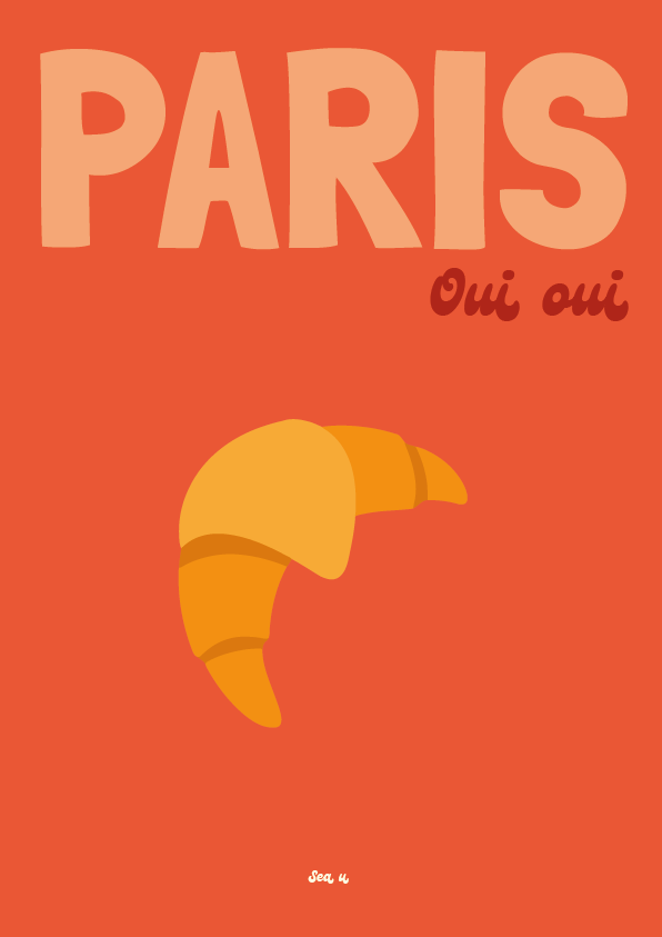 Apportez une touche parisienne à votre décoration avec cette affiche amusante qui illustre le fameux cliché "oui oui baguette". Les couleurs de l'affiche apporteront une touche de bonne humeur à n'importe quelle pièce de votre intérieur.
